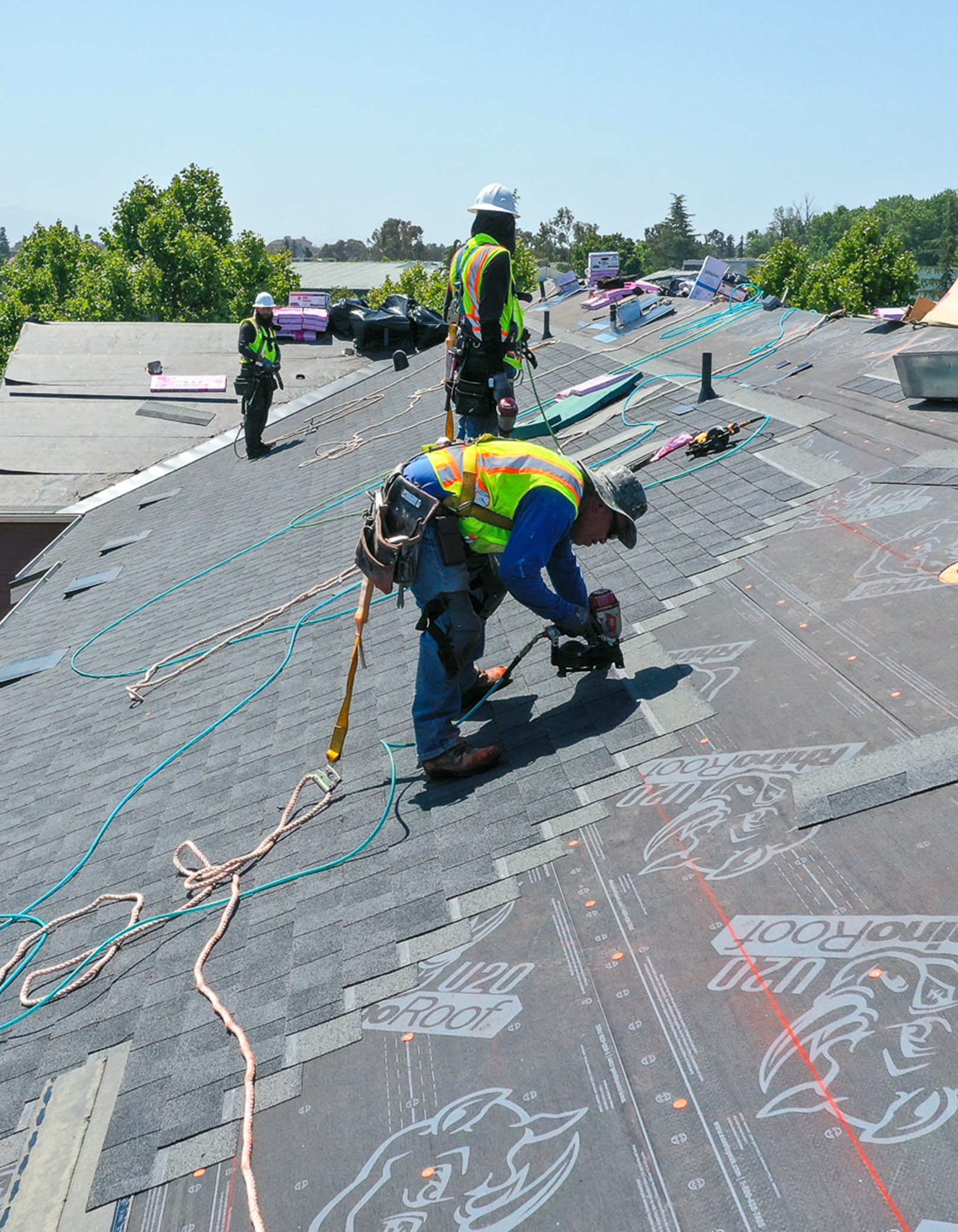 My family and I lived through a (3) layer tear-off, and installation of: 40 yr. composition shingles, gutters and downspouts, solar attic venting.